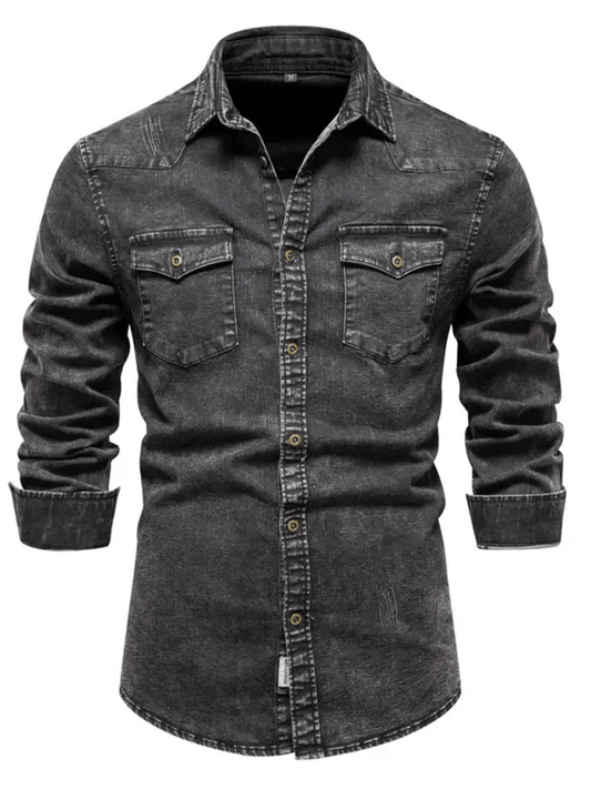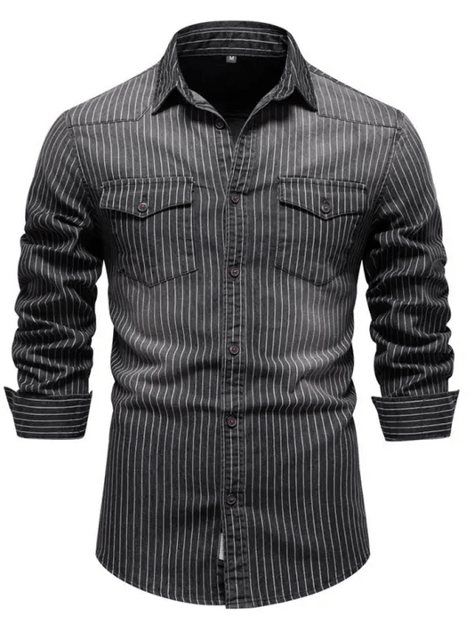 Heavy Washed Distressed Striped Men's Denim Shirt